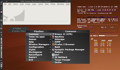 2 minutes read | 224 words by Ruben BerenguelLast monday I bought an Acer Aspire One, 8.9', with an extra 6-cell battery and 15 minutes later I installed Ubuntu (Netbook Remix version) on it, and after realizing everything was working smoothly (except for the SD card reader… anyway, I have an external device for doing so) I installed the Fluxbox window manager. New: You may also be interested in Two weeks: still loving Fluxbox.