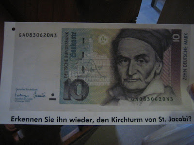 Old 10 Deutsche Mark banknote. Gauss depicted along with a normal distribution and 5 historical buildings in Göttingen. The most visible, St. Jacobi’s Church (Jacobikirsche).