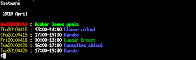 Next week I’ll show you how to use sed to add colours to your events, and how to set at to send you an email every day with your scheduled tasks. You can see a sample from my colour scheme below.