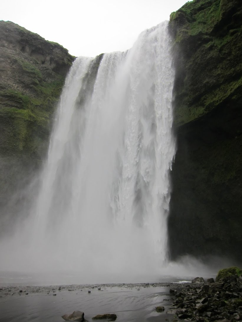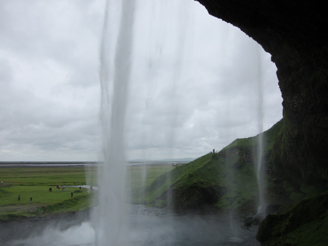 We went down, and the waterfall was mostly deserted… And we took advantage of the Icelandic mentality: walk wherever you want, at our own risk. There are no red velvet lines anywhere, and we walked just below the waterfall and took some pictures. There was a lot of drizzling in the zone, so if you want to do the same, be prepared and bring a raincoat (as I said before) and if you have a point-and-click camera, some kind of lens protection to keep it from getting wet.