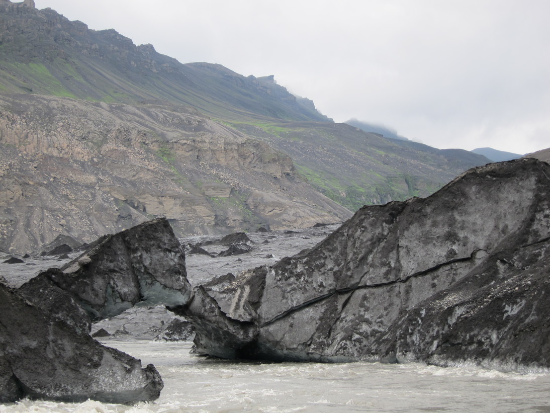 Do you remember Eyjafjallajökull? Yes, that volcano that covered half Europe in ash. Sólheimajökull is a glacier just beside it. Its Icelandic name means The home of the Sun glacier… But the ash cloud turned it pretty darkish.