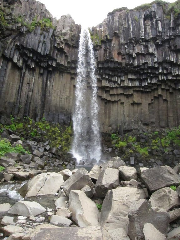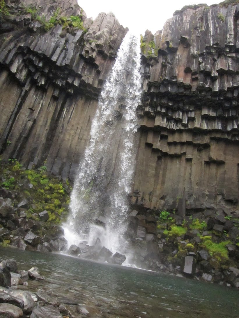 We had lunch in Svartifoss, and I drank a little water from the waterfall. As usual, it tasted wonderful and had a rocky aftertaste. As I have said before, everywhere in Iceland you can go as far as your legs will take you, but here there was a catch: there was a sign asking people to please, don’t step over the plants, as they are very delicate. Jumping over rocks you can get only this far, even more when the rocks are wet.