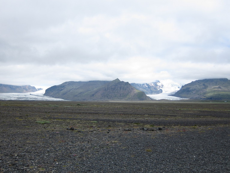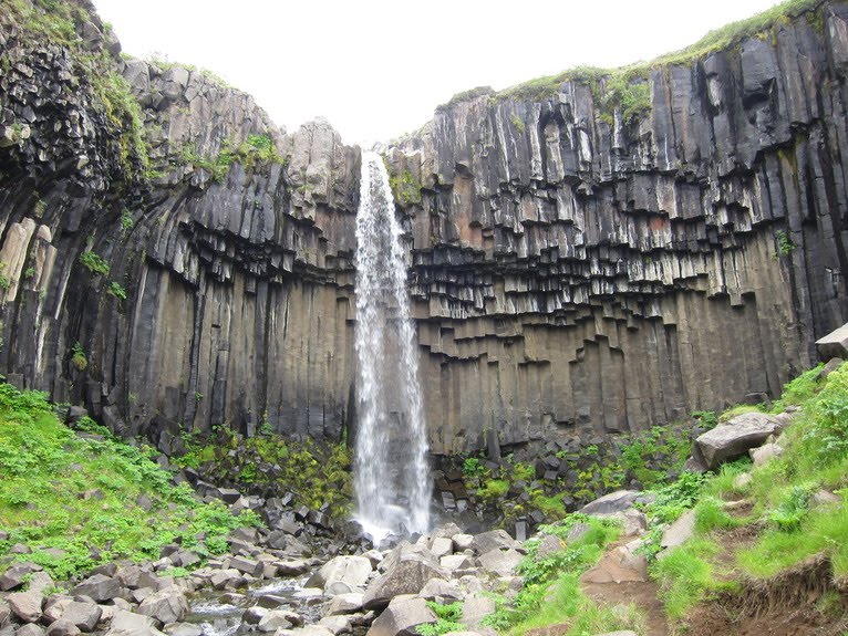 Now a pretty long and boring drive along the Ring Road. There were not a lot of interesting sights on the way, unless you love bridges. We passed a few, and there is even a bridge monument, to a “recently” broken bridge. It forms a stopping area, where you can take a few pictures of the stunning views of the Vatnajökull glacier and the Skaftafell area. A shorter drive by, and you get to the Vatnajökull-Skaftafell parking area, where a short walk leads to the Svartifoss waterfall.