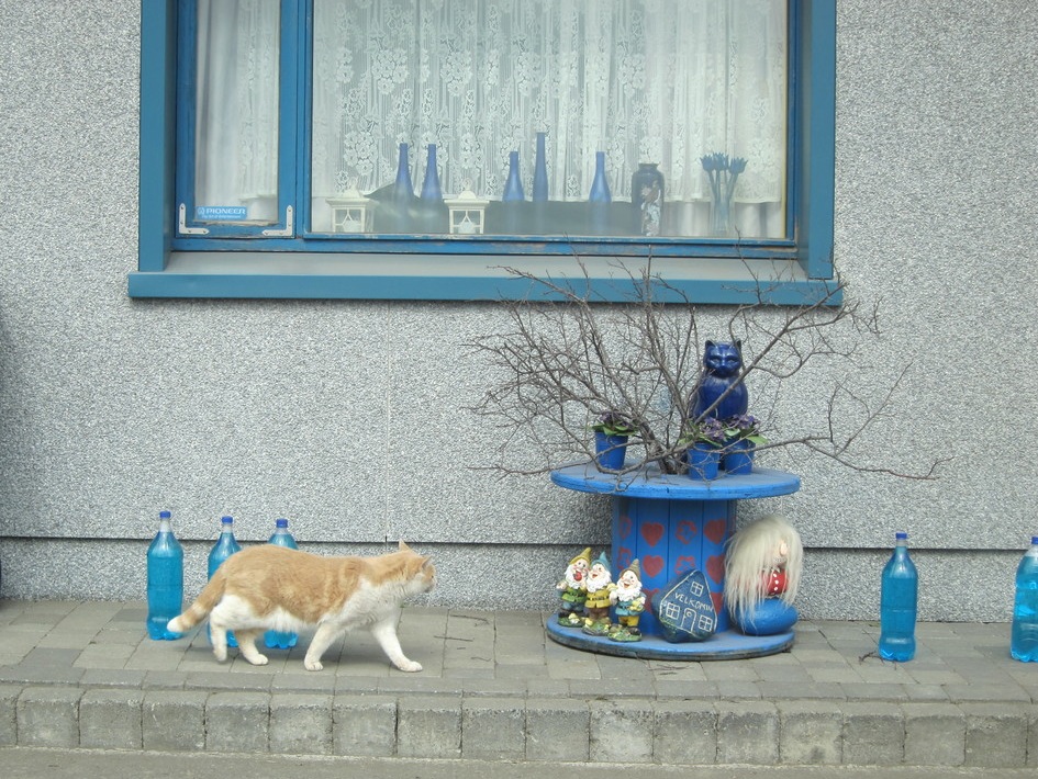 Parked in front of the information centre, where parking is free (which happens almost everywhere, in spite of what our travel guide explained). Walked around for a while, before having a look at the local Eymundsson bookstore, which had absorbed the old local bookshop. Nothing interesting, the same books we saw at Akureyri. But beside it we found a wonderful “store”, mix of cafe and wool and handcrafts. We had a coffee with a rhubarb pie, very similar to my æblekage.
