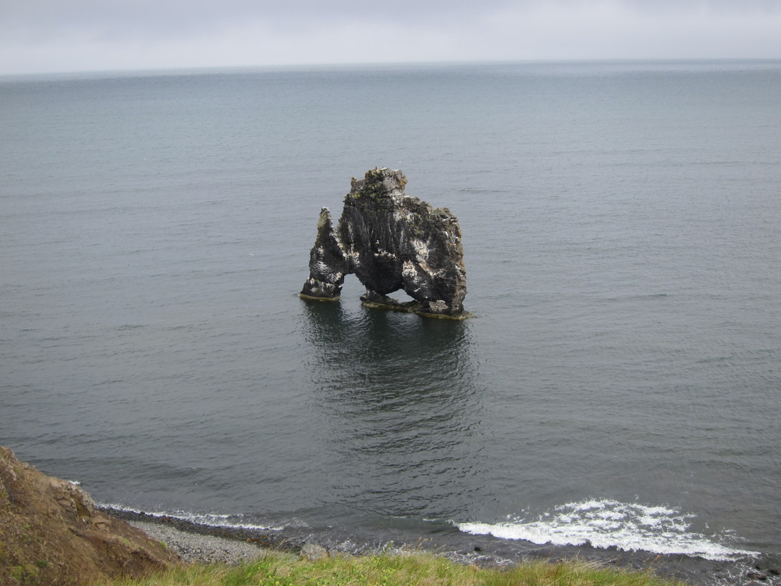 The Hvítserkur is an odd-shaped rock formation, 15 meters from the shore. It looks really interesting, and it is one of the most visited things in this area. There are two ways down the beach: to the right of the parking zone, slowly and going pretty far in an almost flat walking path or an uneven quite steep path just below the viewing area.